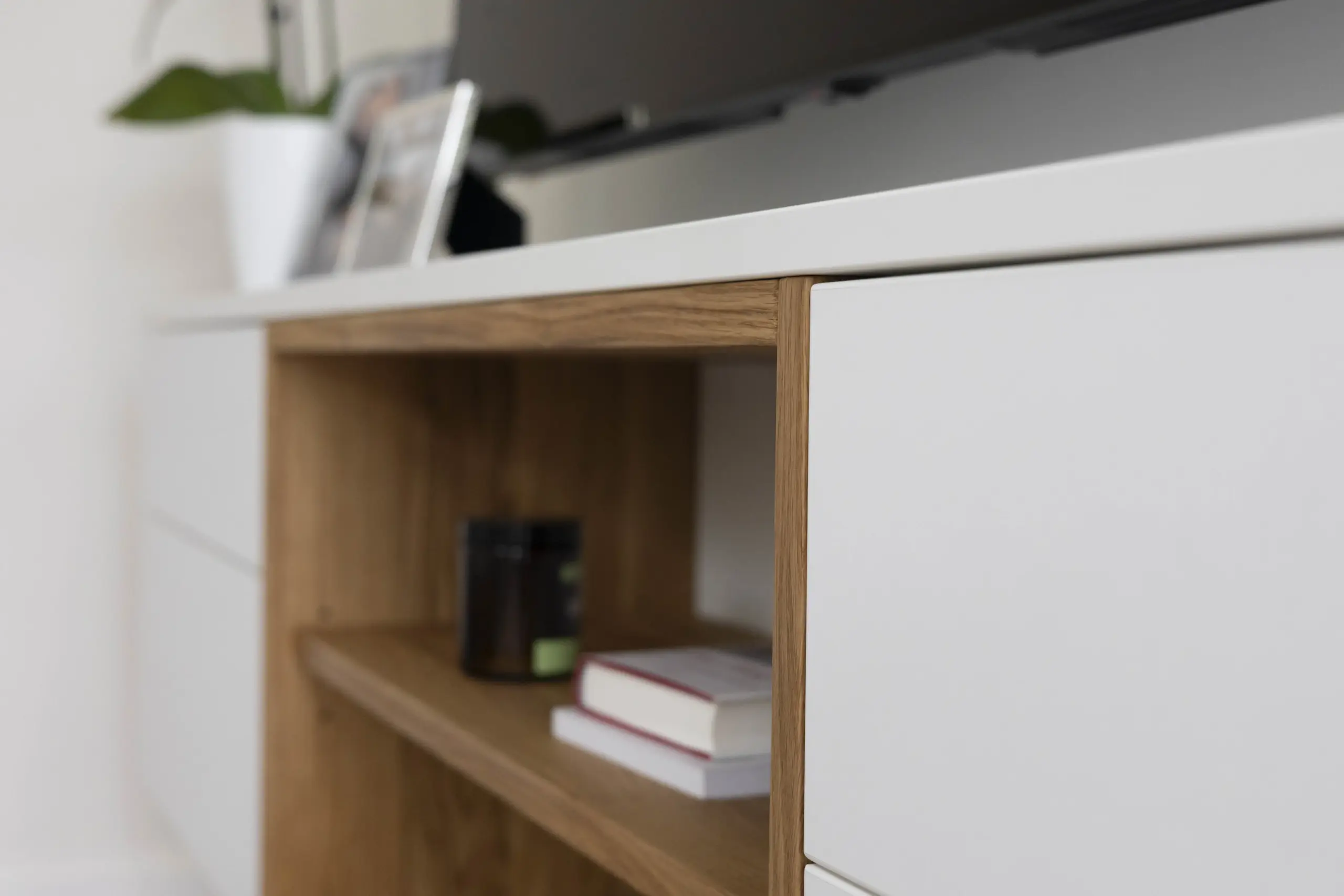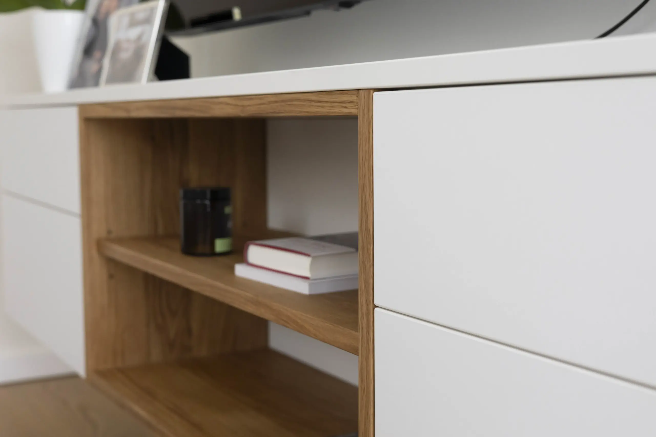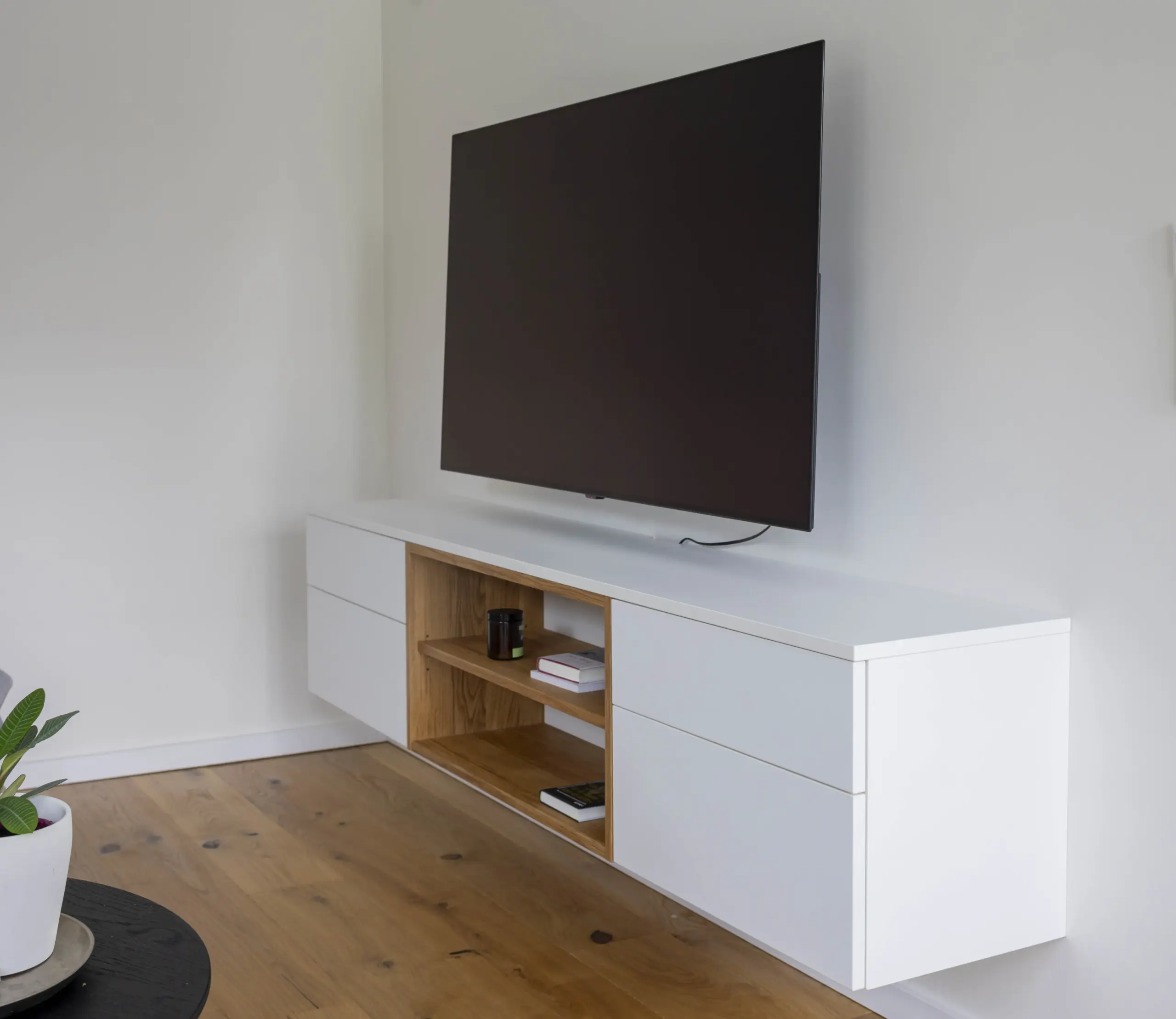 TV-Möbel dienen der formschönen Integration der HiFi-Anlage oder des Fernsehers inklusive allem Zubehör und Empfangsgeräten. Wir bieten Möbel nach Maß und finden die beste Lösung für Ihr Home-Entertainment oder Heimkino. Selbst Freunde der Schallplatte finden bei uns ein passendes Möbel. Ob am Ende ein TV-Board, Lowboard, Highboard oder ein klassischer TV-Schrank mit viel Ablagefläche und Fächern in Ihr Zuhause zieht, finden wir mit Ihnen gemeinsam heraus. Eine versteckte oder unsichtbare Kabelführung ist dabei fast schon ein Standard in unserer Zielvorgabe für ein individuelles Möbel ganz nach Ihrem Geschmack.